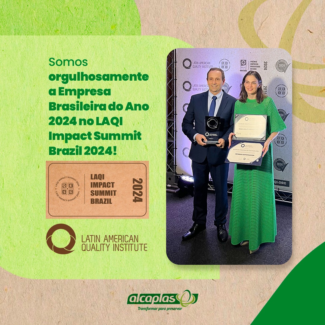 É com imenso orgulho que anunciamos que a Alcaplas foi homenageada com o Prêmio Latino Americano, como Empresa Destaque Ano 2024 no LAQI Impact Summit Brazil 2024, Modelo ESG – O Diferencial Competitivo do Futuro.