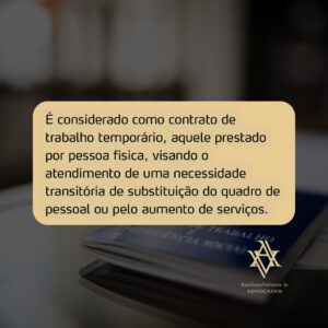 Lei n.º 6.019, de 3 de janeiro de 1974, determina que o trabalhador temporário deve ser contratado para trabalhar por um período determinado, com carteira assinada.