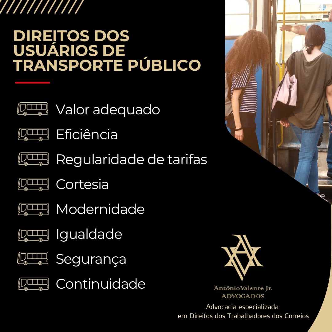 Os direitos dos usuários de transportes públicos estão definidos nas leis 12.587/2012 e 8.987/1995.