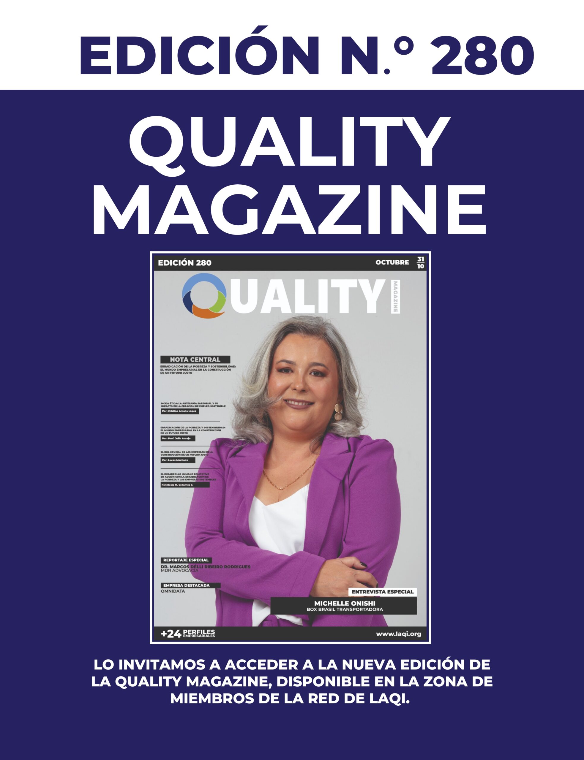 Ya está disponible la edición N.º 280 de la Quality Magazine en la Red de Miembros de LAQI, cargada de temas clave para el desarrollo sostenible y la innovación empresarial en América Latina.